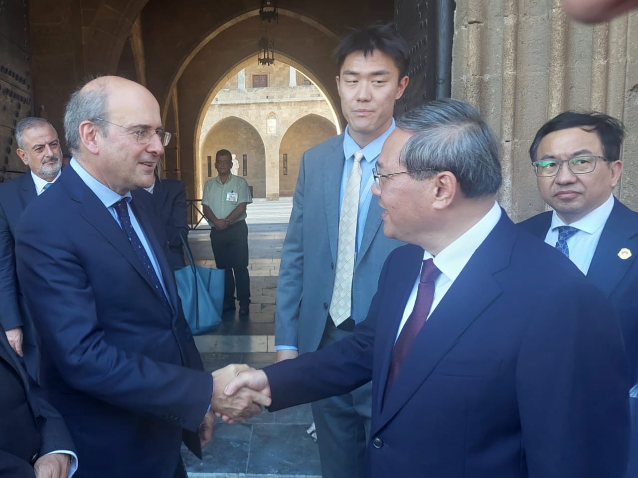 Ο αντιπρόεδρος της κυβέρνησης, Κωστής Χατζηδάκης, υποδέχτηκε σήμερα στη Ρόδο τον Πρωθυπουργό της Κίνας, κ. Li Qiang, ο οποίος θα παραμείνει για λίγες ώρες στη χώρα μας, στο πλαίσιο του ταξιδιού του στη Βραζιλία για τη Σύνοδο της Ομάδας BRICS.